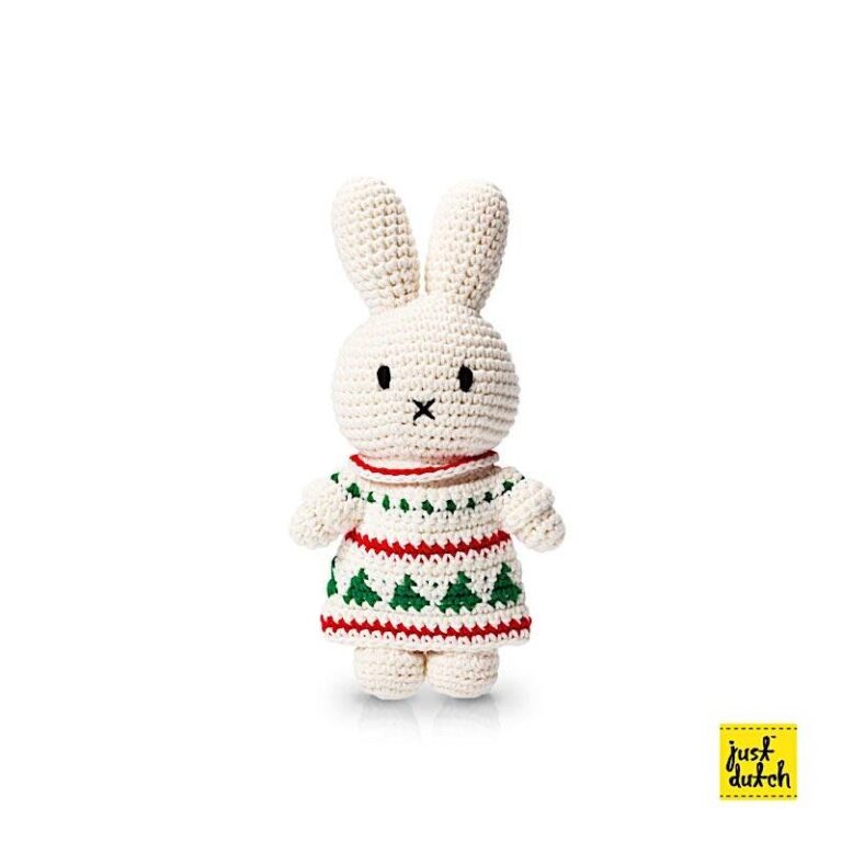 Miffy setzt sich in Weihnachtsfarben ein. Frohe x-mas.