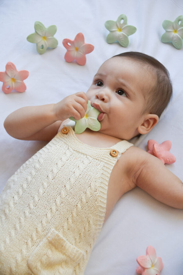 aloha! Bali The Flower is a mini-juice of baby teeth with ergonomic design. His textures make him soothing and relaxing for the gums of the little ones during the dental period.