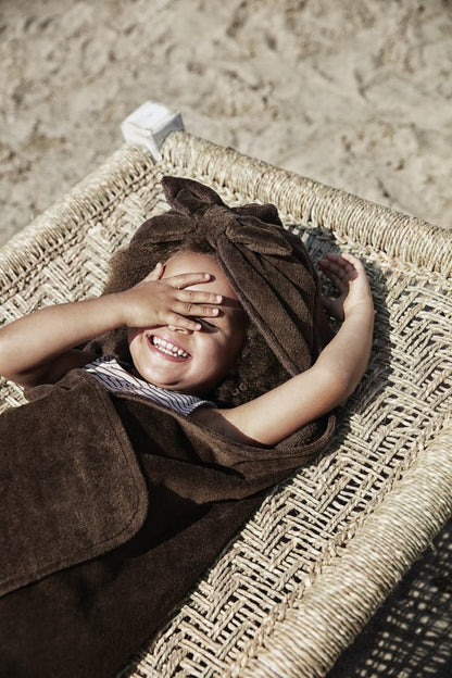An adorable bath cape made in an excellent quality sponge material on one side, and in pleasantly soft velvet on the other, to provide the child with all the comfort necessary for the bathing. << /p>