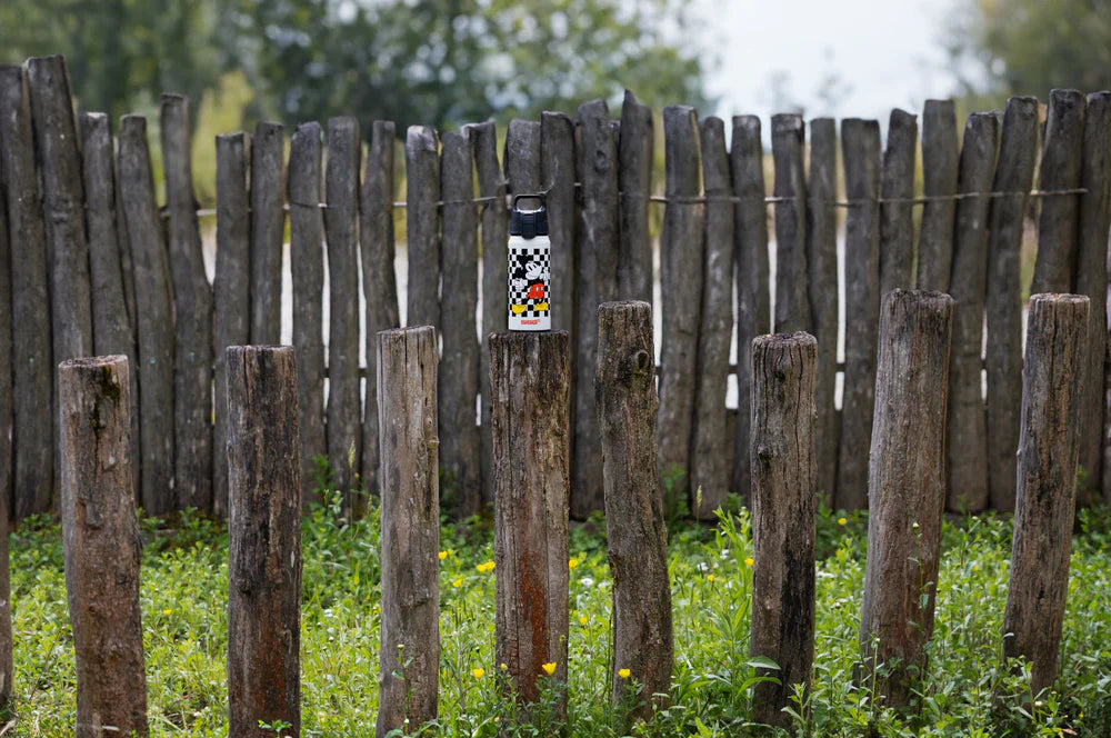 Celebrate the timeless charm of Mickey Mouse and his 70th anniversary with this retro-inspired 0.6-liter water bottle. Its leak-proof cap stays tightly closed even with carbonated beverages or when the bottle is placed horizontally or upside down. The lightweight yet durable aluminum bottle withstands rough handling, and its wide neck allows for easy filling and cleaning. The interior coating won't absorb flavors and is resistant to fruit acids, so every refreshing sip tastes just as good. It's also designed to stand the test of time, just like Mickey Mouse, making it the perfect alternative to single-use plastic bottles and cups. The recyclable material is free of BPA and phthalates, which are harmful to you and your children.
