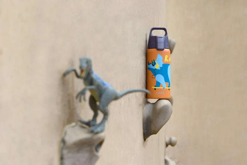 Introducing: the coolest kids' water bottles on the market! The Shield Therm ONE kids' water bottle is easy to open and close thanks to its innovative ONE Top, yet sturdy enough to survive a fall without spilling. Its double-walled, vacuum-insulated, copper-coated design keeps your child's favorite drinks cold for up to 36 hours! It doesn't get any cooler. Of course, it's also perfect for hot drinks thanks to its insulating effect. When it comes to design, every kid has their own taste – that's why we offer a wide range of fun and colorful designs. The Shield Therm ONE kids' water bottle is made from 90% post-consumer recycled stainless steel and is an environmentally friendly alternative to disposable plastic containers. And like all SIGG water bottles, it's guaranteed BPA-free and meets strict EU food safety standards to protect your child's health. So your child will always have a hot or cold drink at hand!