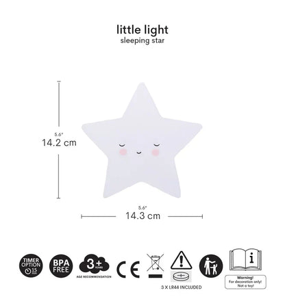 This small white star-shaped bedside lamp casts a soft glow and creates a sense of security in the dark, allowing children to fall asleep peacefully. Cordless, it doesn't get hot and is easy to carry.