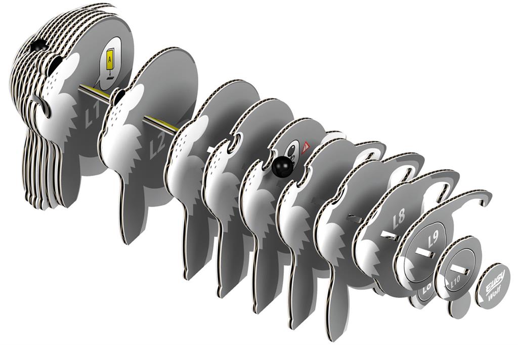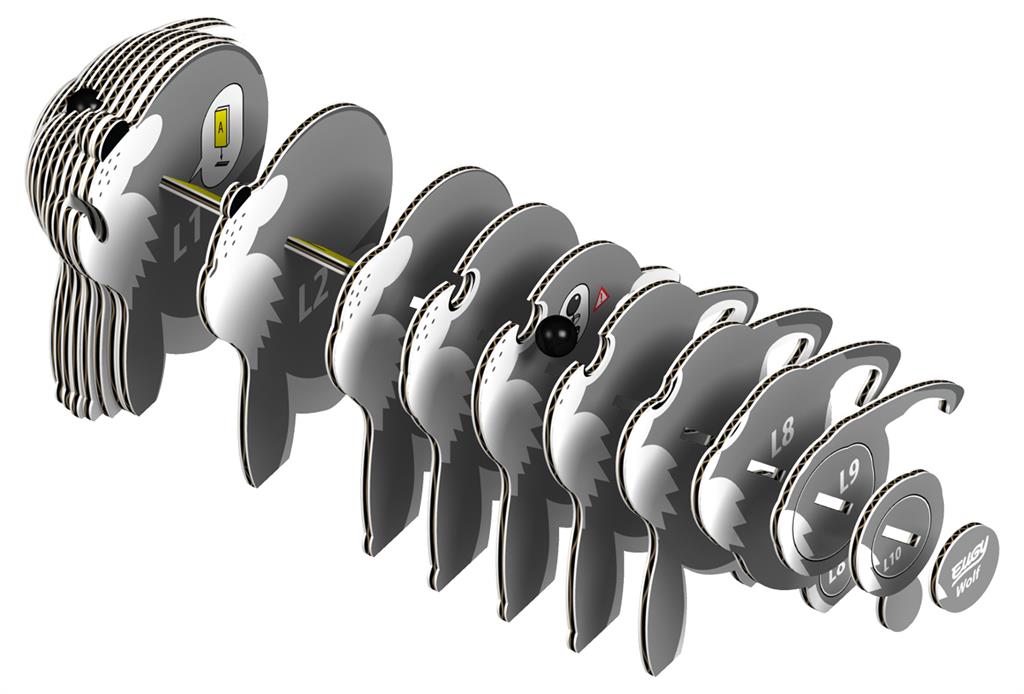 Nos produits sont conformes à 100% aux normes de sécurité internationales (EN71-1,2,3 et CPSIA). Un pack EUGY contient 7 cartes plates avec des pièces numérotées individuellement, toutes prêtes à être assemblées.