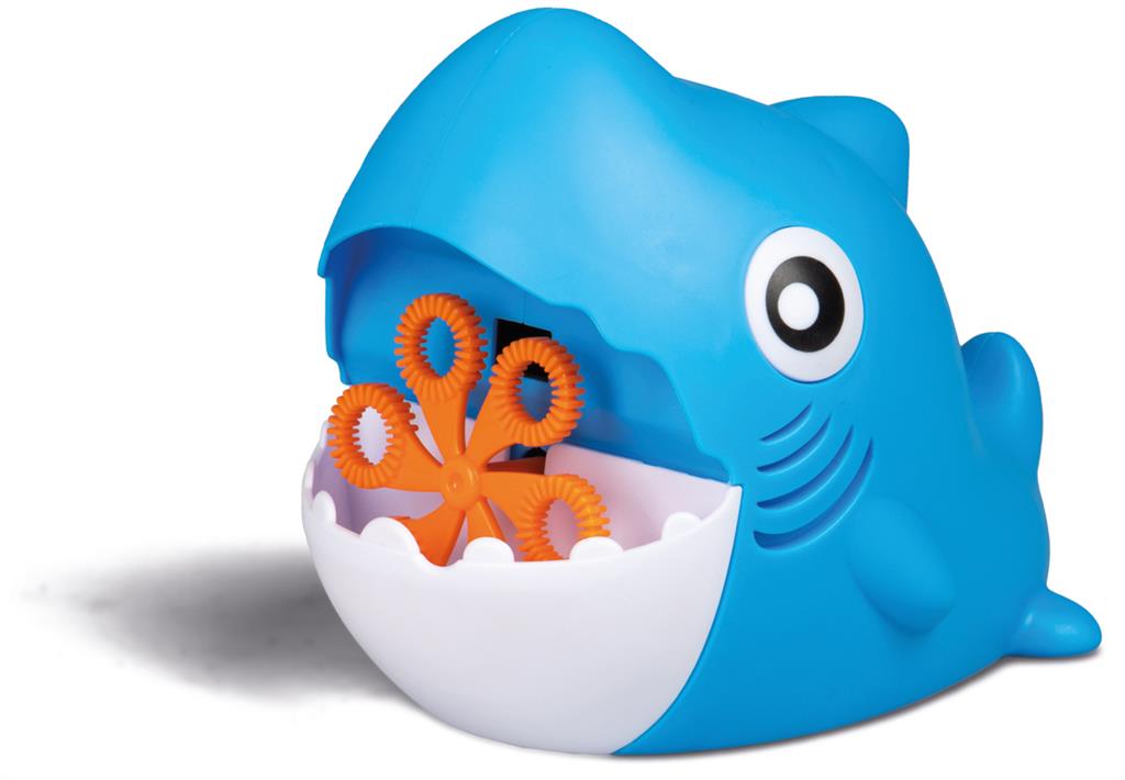 Pustefix: MACHINE à BULLES REQUIN, avec 70ml de liquide Pustefix, fonctionne avec des piles (3x AA non incluses), dans une boîte ouverte, 4+