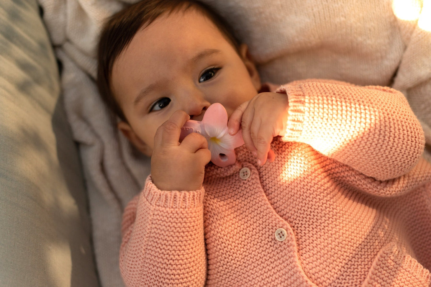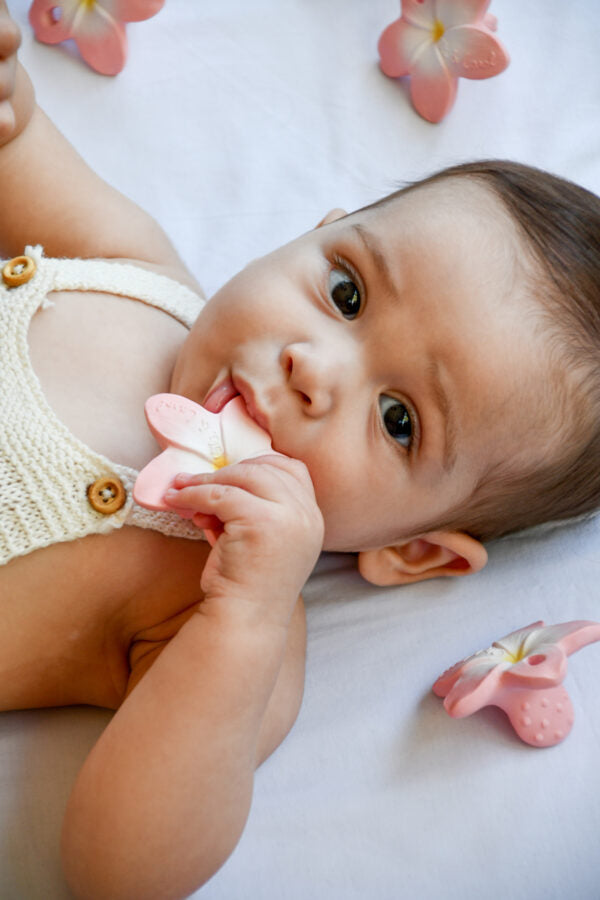 Aloha ! Bella the Flower est un mini-jouet de dentition pour bébés au design ergonomique. Ses textures le rendent apaisant et relaxant pour les gencives des petits pendant la période dentaire.