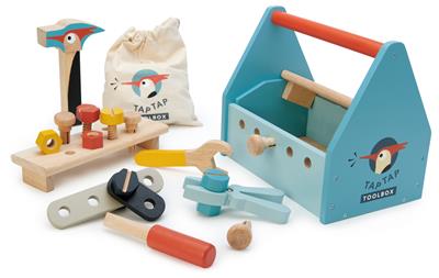Tender Leaf Construire: BOÎTE À OUTILS TAP TAP 23x15x20cm, avec accessoires, en bois, en boîte 23,4x15,7x20,6cm, 3+