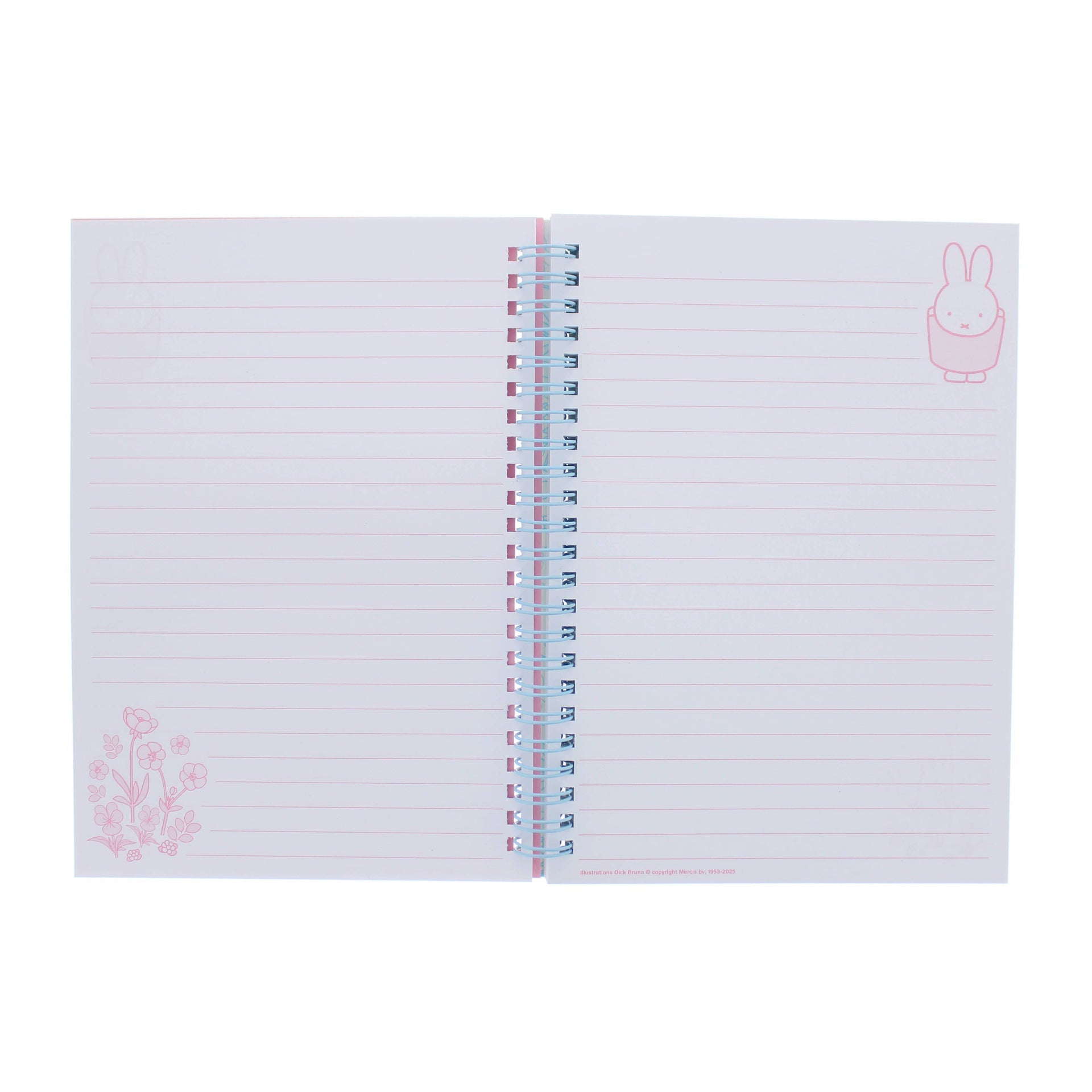 Procurez-vous l'un de ces magnifiques carnets Miffy A5 ! La couverture avant est découpée en forme de visage de Miffy avec une feuille volante florale visible à travers, ce qui la rend très accrocheuse. Il contient 80 feuilles de papier ligné vous offrant beaucoup d'espace pour écrire, dessiner et noter toutes vos informations importantes. • Carnet A5 relié par spirale avec couverture avant découpée • Feuille volante au design floral • 80 feuilles de pages lignées