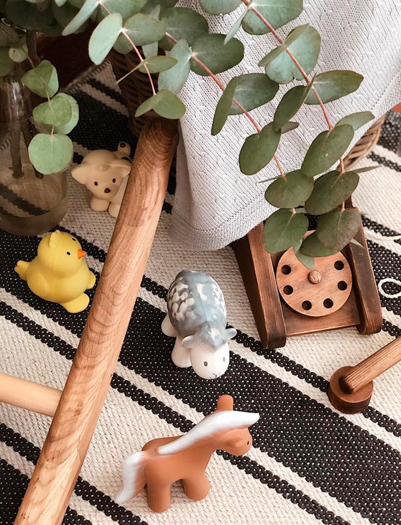 Jouets de bain en caoutchouc naturel et anneaux de dentition.