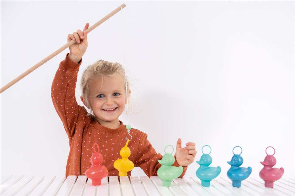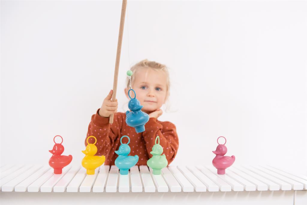 Des heures de pêche amusante, à l'intérieur ou à l'extérieur, dans le bain ou au sec. Apprenez aux enfants à reconnaître les couleurs en leur désignant une couleur à pêcher. Vous pouvez attribuer des points aux canards à l'aide d'un marqueur indélébile afin de rendre le jeu complet. Set de 6 canards et de 2 cannes à pêche. La très populaire pêche aux canards est désormais également disponible avec des teintes branchées ou des couleurs douces qui rappellent les coraux. Son emballage moderne et tendance fait de ce set un super cadeau à offrir.