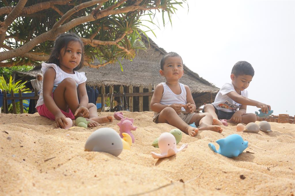Jouets de bain en caoutchouc naturel et anneaux de dentition.