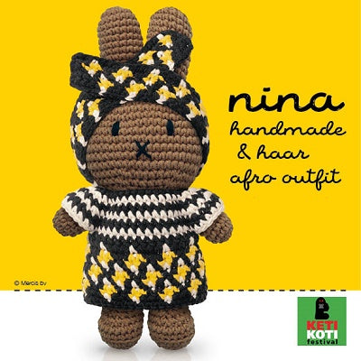 Miffy en crochet, c’est LA peluche à avoir. Handmade et donc unique à chaque achat. Version Tenue Africaine