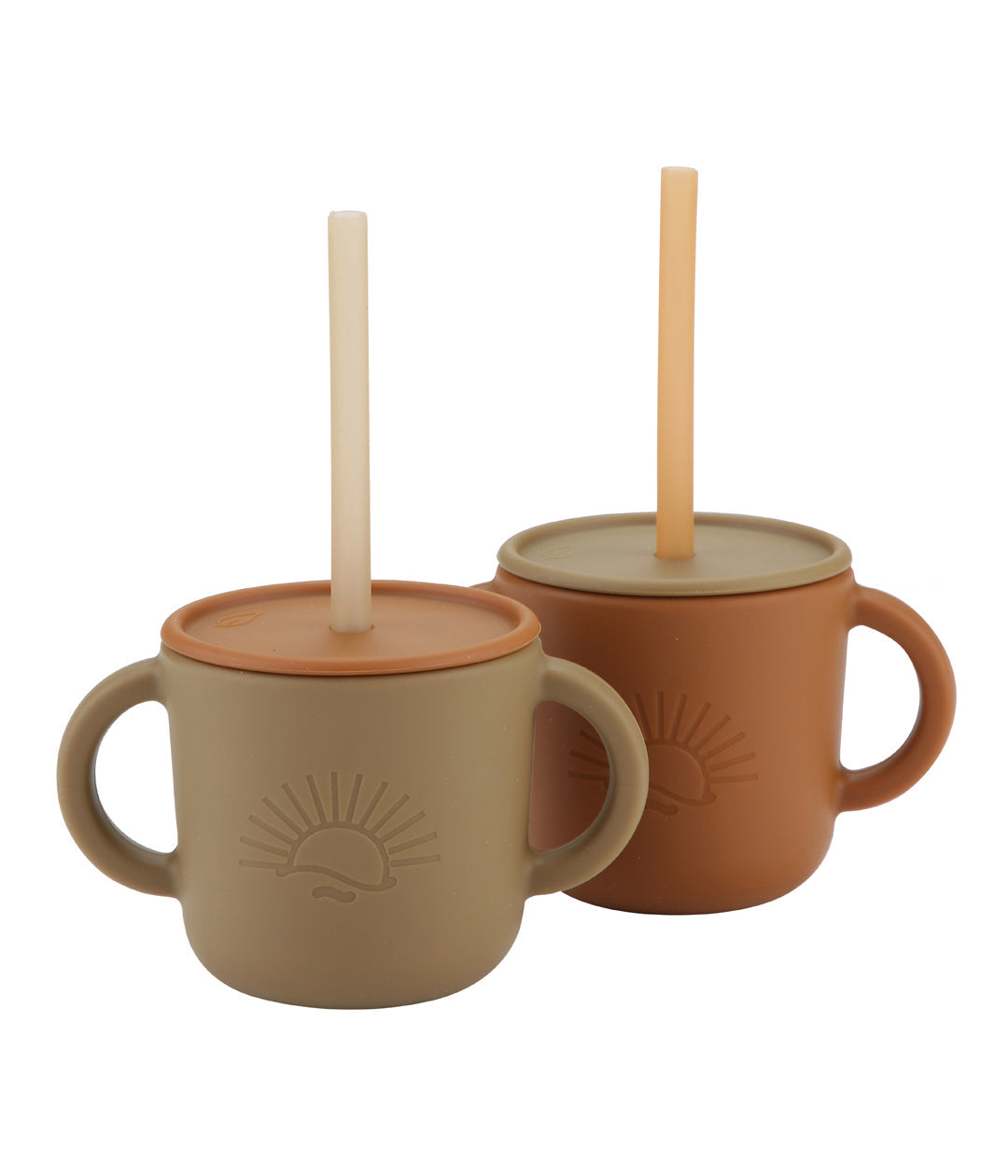 Regardez ce duo de cups pour votre enfant. Avec couvercle en silicone FOODSAFE. A combiner parfaitement avec les pailles de By Lille Vilde. Paille non comprise, ouverture de 7mm. Utilisable en micro-ondes, lave-vaisselle et votre four.