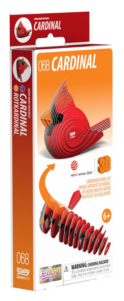 Eugy 3D Modèle: OISEAU / CARDINAL 6,5x4,1x6,3cm, en carton, en boîte, 6+