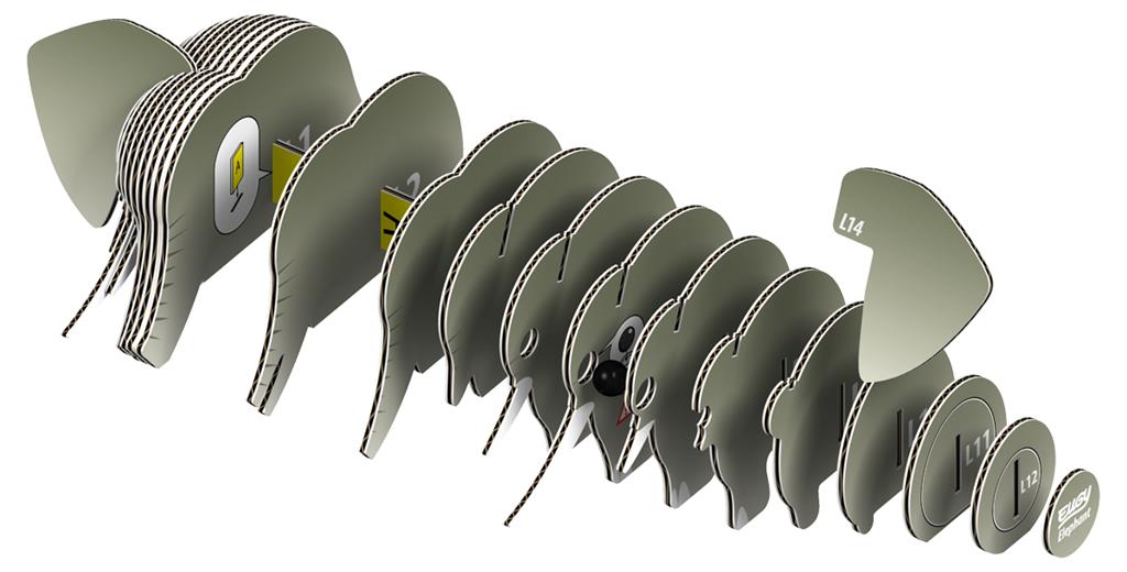 Eugy 3D Modèle: ANIMAL SAUVAGE / ÉLÉPHANT 7.8x7.5x4.9cm, en carton, en boîte, 6+
