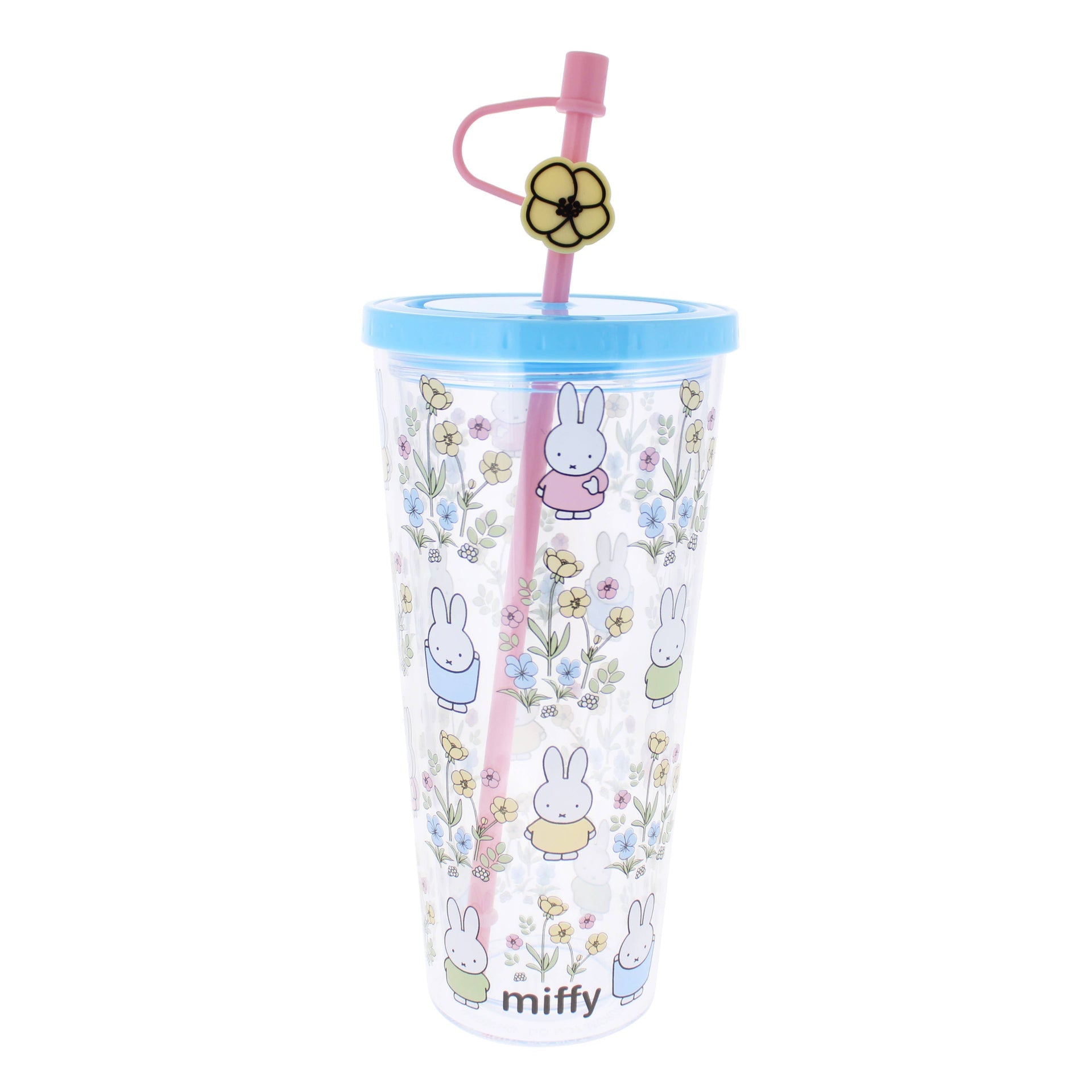 Rendez la consommation encore plus facile et mignonne avec ce gobelet et paille adorables de Miffy. C'est l'ajout parfait à vos essentiels quotidiens, car c'est le meilleur moyen de rester hydraté en déplacement ou simplement pour se détendre à la maison. Le design est une impression intégrale de nombreux Miffys et fleurs ! La base du gobelet est transparente avec un couvercle bleu, une paille rose avec un capuchon ainsi qu'un clip MI en forme de fleur, comment résister ! • Gobelet et paille transparents avec un capuchon de paille • Insigne MI en forme de fleur • Contient environ 700 ml