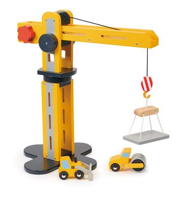 Mentari Véhicules: GRUE avec 2 VOITURES DE CONSTRUCTION 37x20,5x34,5cm, en bois, en boîte, 3+