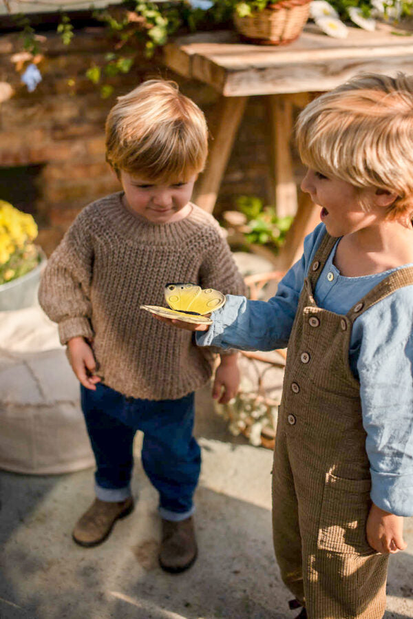 Katia le papillon : majestueux avec ses grandes ailes jaunes et noires ornées de textures différentes.