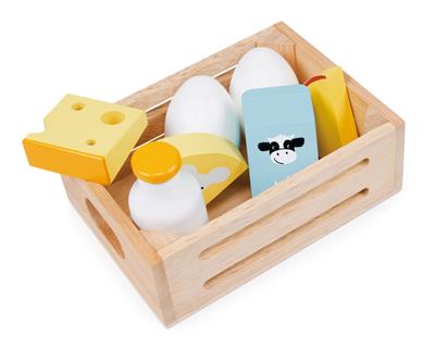Mentari Boutique: LE PANIER DU MARCHÉ - PRODUITS LAITIERS 14,5x10,5x5cm, 7 pièces, en bois, en boîte, 3+