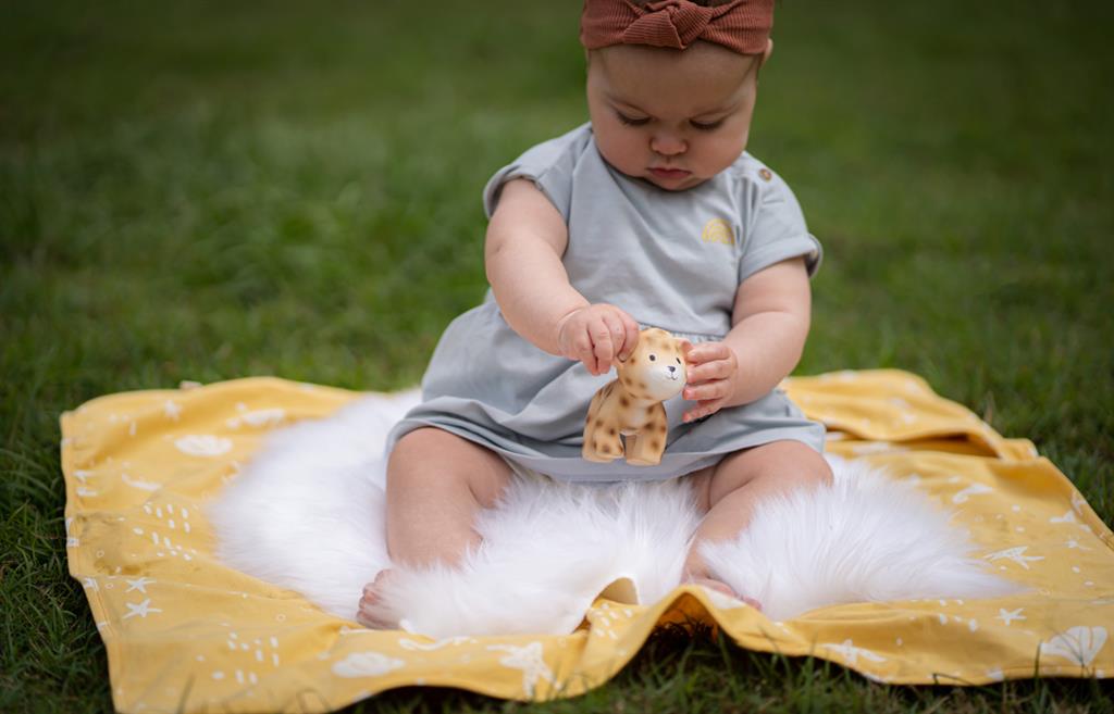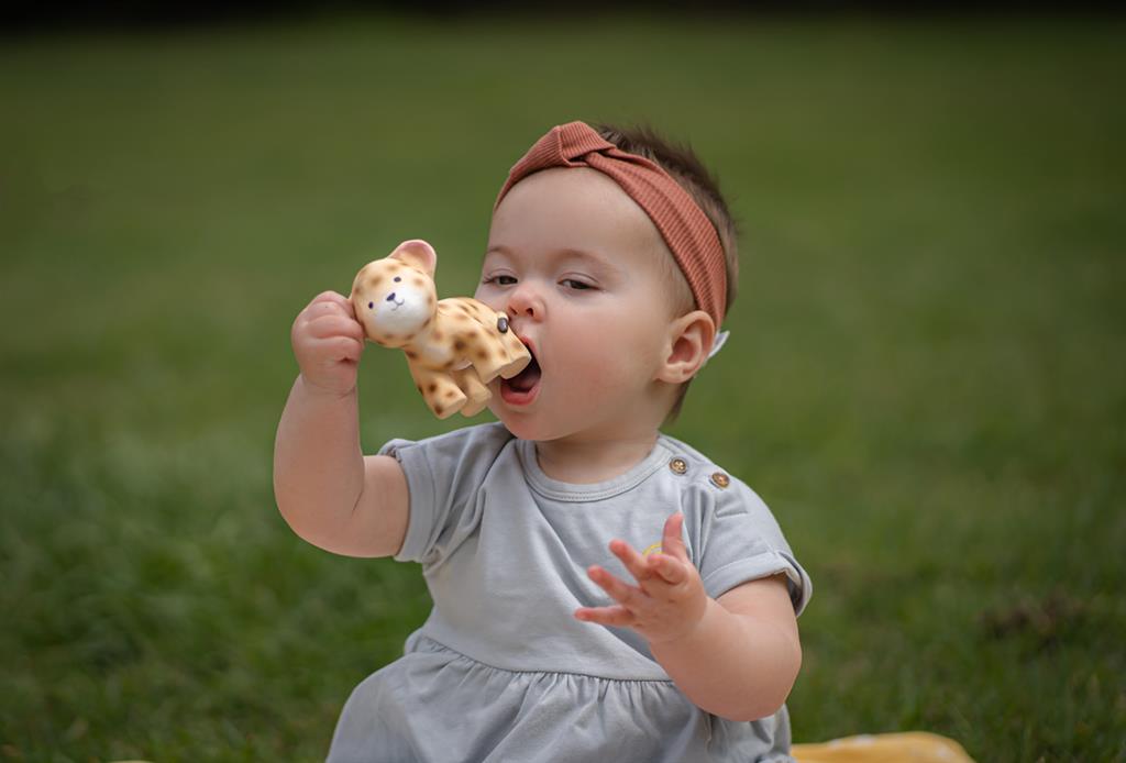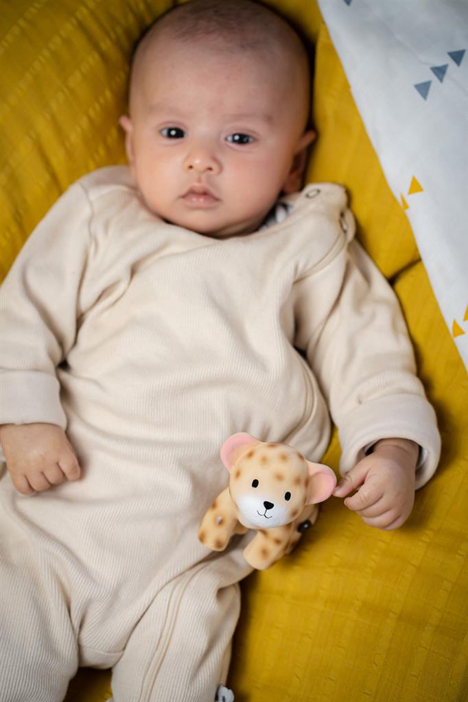 Tikiri: MON PREMIER ANIMAL SAFARI / LÉOPARD, avec grelot, en caoutchouc naturel, avec carte, 0+
