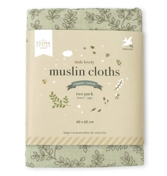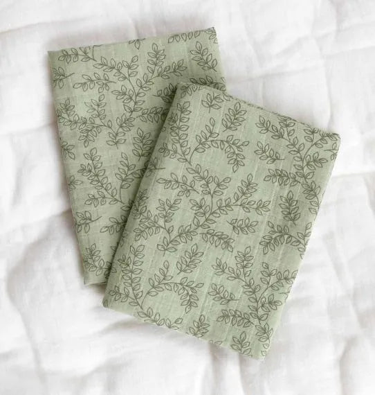 Pack de 2 Langes Coton Bio Feuilles Sauge