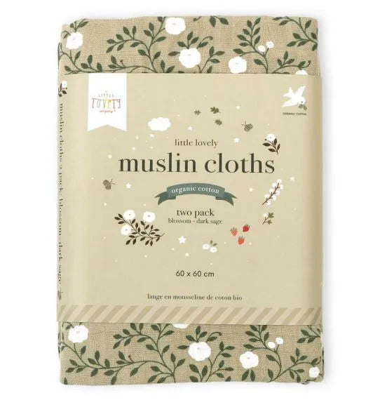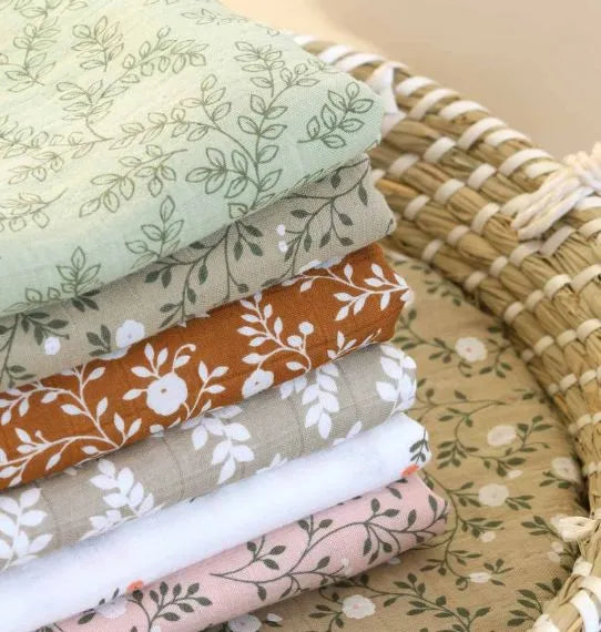 Pack de 2 Langes Coton Bio Fleurs Sauge