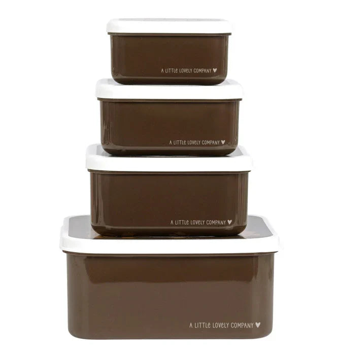 Ce coffret déjeuner et goûter marron avec ours est idéal à emporter à l'école ou en déplacement. Il se compose de quatre boîtes de tailles différentes, faciles à empiler et à ranger.