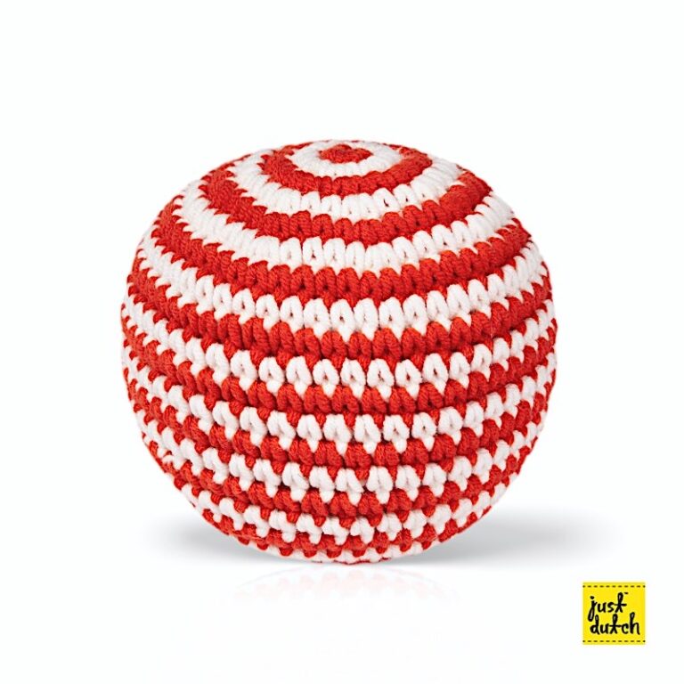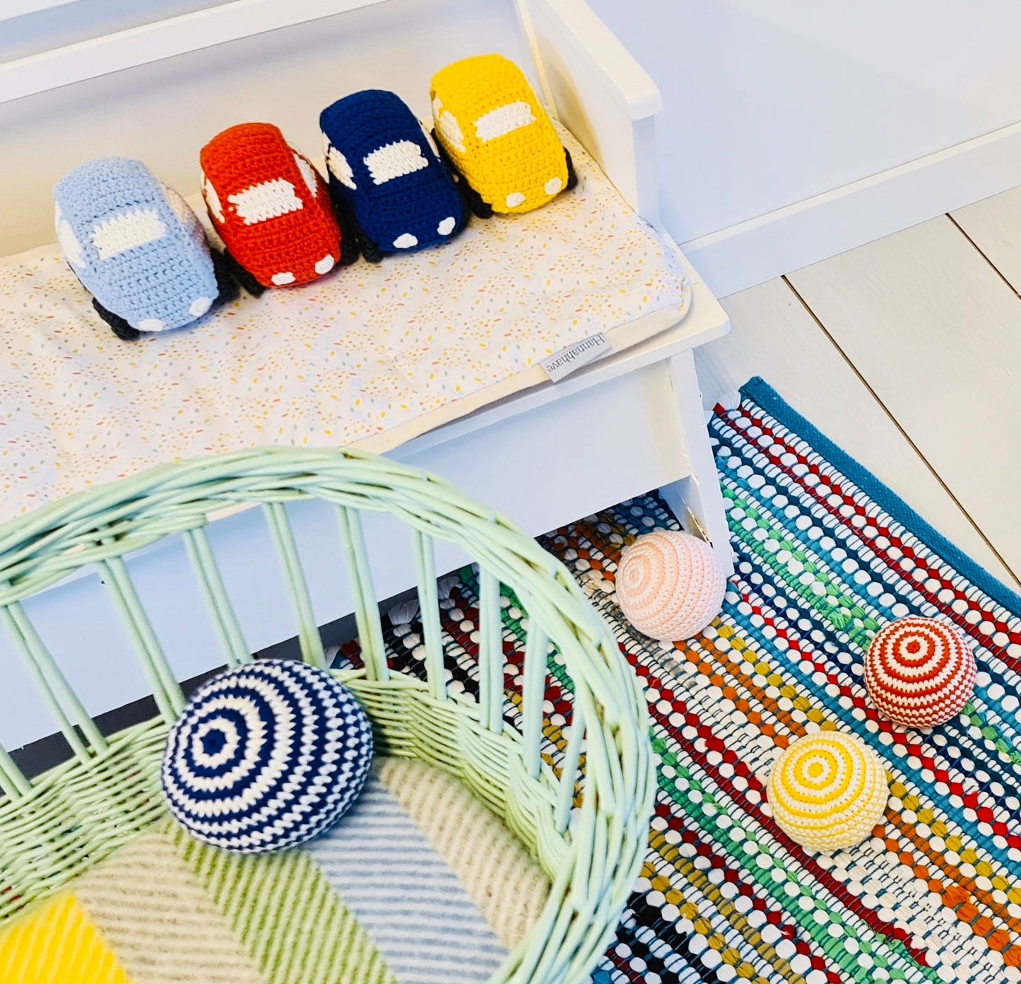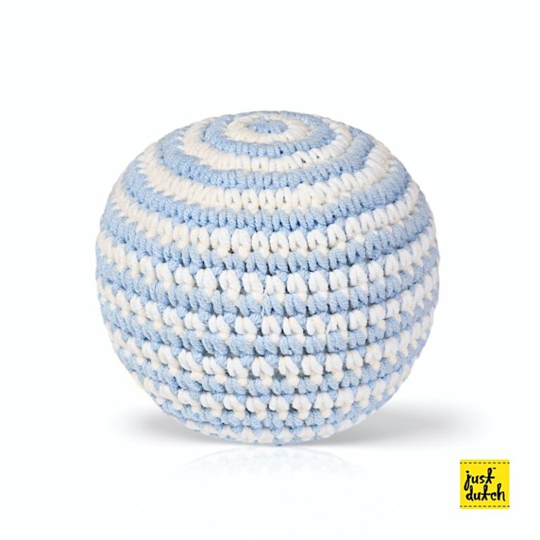 La peluche Just Dutch en forme de Balle, fabriquée à la main au Vietnam, dans le cadre d’un programme d’insertion. Douce et mignonne dans le berceau.