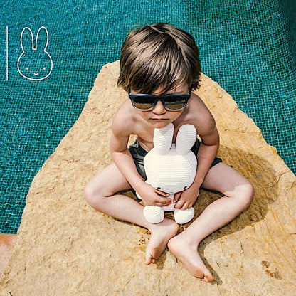La peluche Miffy en velours Côtelé, taille 33cm. Décoration ou peluche, le tout est possible.
