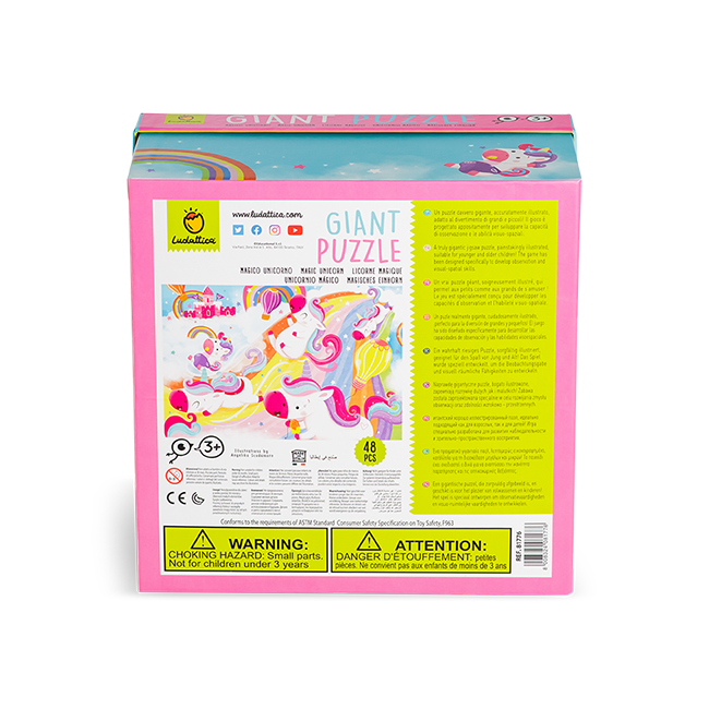 Des pièces robustes en carton à encastrer, pour reconstituer une grande scène, située dans le monde fascinant des licornes. Les images illustrées avec soin et le carton très épais font de ce jeu un jeu unique et précieux.