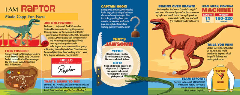 Chaque puzzle est livré avec un encart éducatif Madd Capp Fun Facts. D'un côté se trouve une image de puzzle dépliante à accrocher comme affiche ou à utiliser comme référence. D’un autre côté, il y a une multitude de faits étonnants. Saviez-vous, par exemple, que le deinonychus avait une grande serre en forme de faucille sur le deuxième orteil de chacune de ses pattes postérieures ? Comme des grappins, ses griffes massives pouvaient s'accrocher à une proie et lui infliger une attaque meurtrière, facilitant ainsi la chasse !