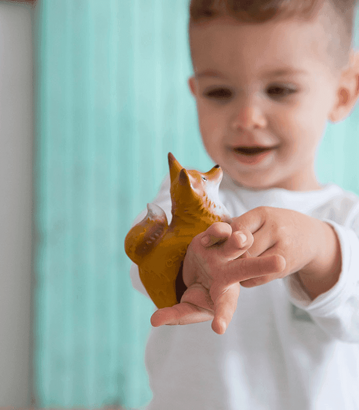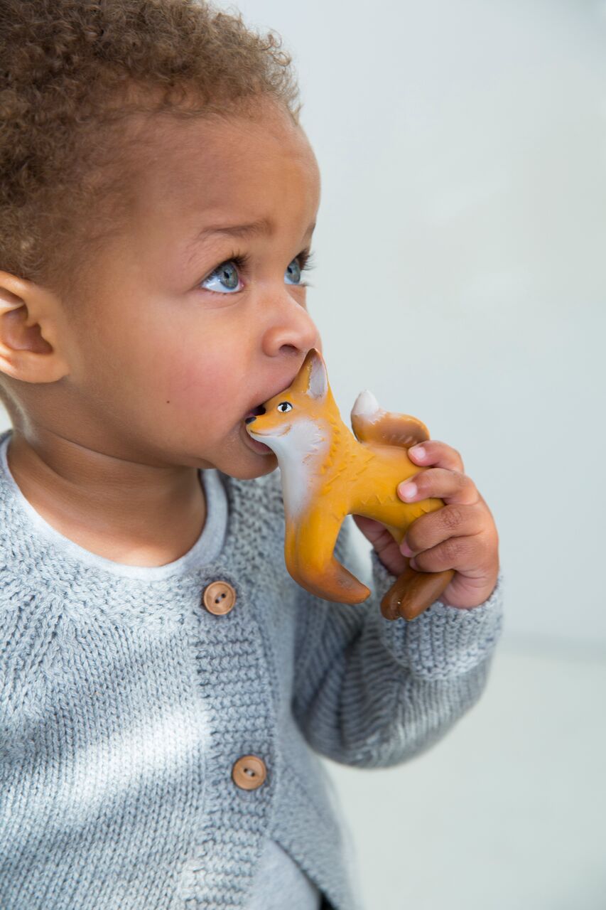 Rob le renard est un anneau de dentition en forme d'animal qui est parfait pour être utilisé comme jouet de dentition, jouet pour le bain et jeu sensoriel. Il est peint avec des pigments naturels, 100% sans danger pour les enfants ! Prêt à être porté aux poignets des bébés et des enfants lors de chacune de leurs aventures !