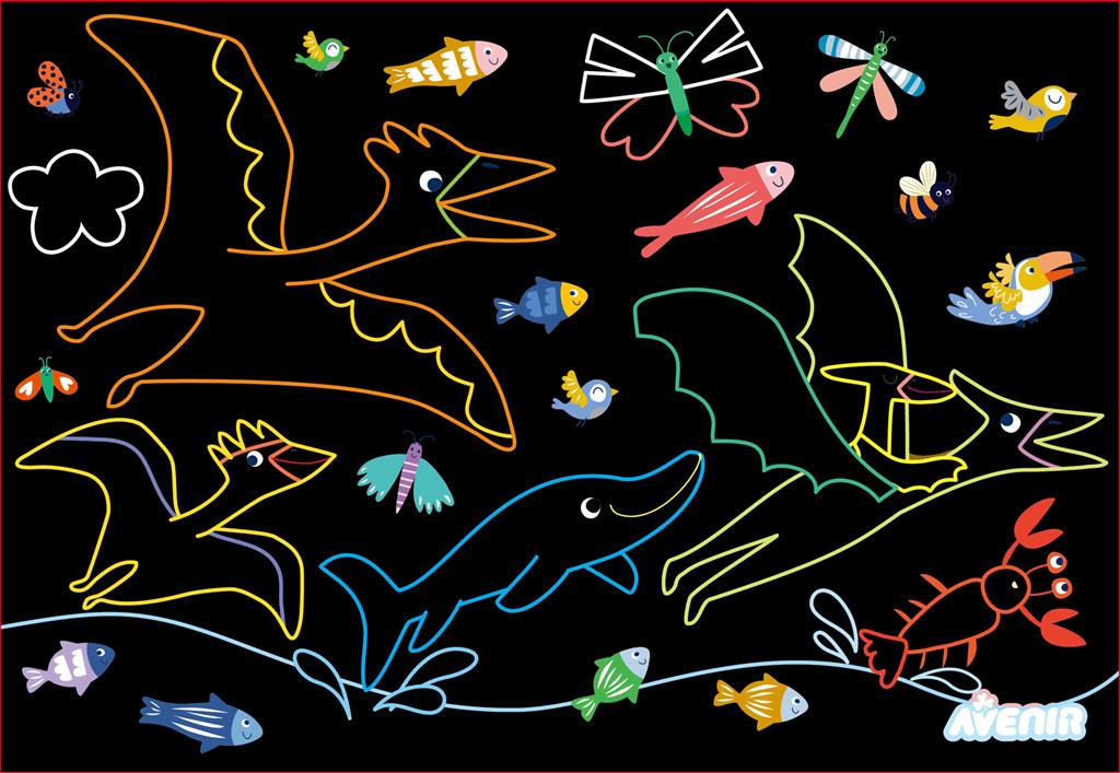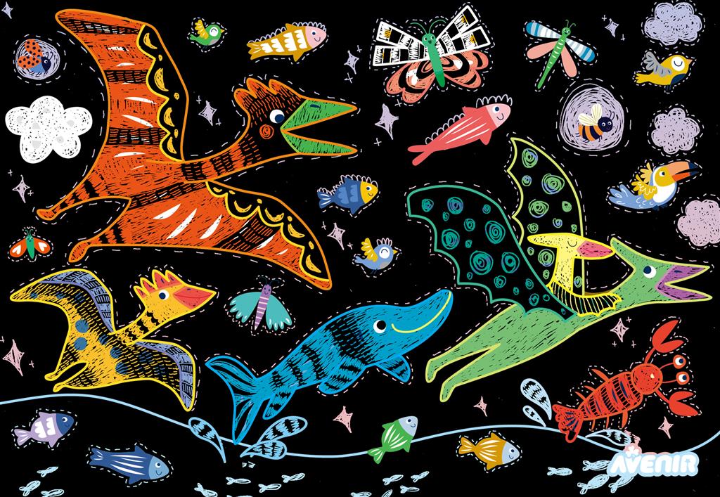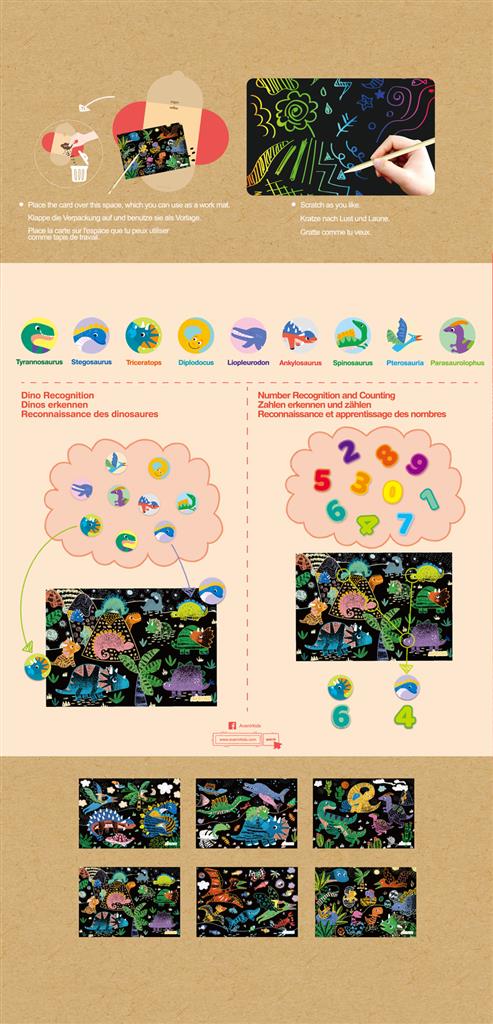 L'art à gratter incroyablement coloré d'Avenir est sûr de divertir les tout-petits. Grattez le papier noir spécial pour colorier les dinosaures.