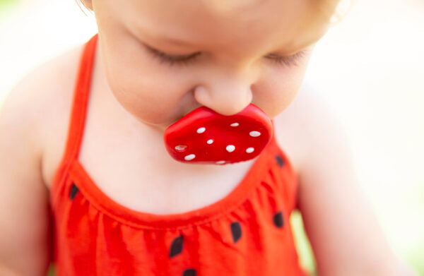 Spotty the Mushroom est le nouveau jouet de dentition en forme de champignon d'Oli&Carol pour les bébés. Cette conception légère et ergonomique est parfaite pour qu'ils puissent la tenir et la mâcher facilement. Ce jouet de dentition pour bébé comprend une gamme de textures pour aider à apaiser les gencives des petits et est facile à accrocher à un porte-sucette et à emporter partout avec vous !