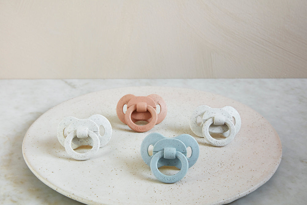 Après 2 ans de travail, Elodie présente sa nouvelle génération de sucettes, mélange de bambou et polypropylène. Un look naturel dans de jolies couleurs à la finition mat.