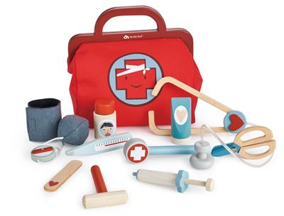 Tender Leaf Premier Âge: VALISETTE DOCTEUR 24,5x16x24cm, avec un sac en toile imprimée et des accessoires, en bois, en boîte 28,5x15,8x23,2cm, 3+