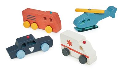 Mentari Véhicules: VÉHICULES D'URGENCE, 4 pièces, en bois, en boîte, 18m+