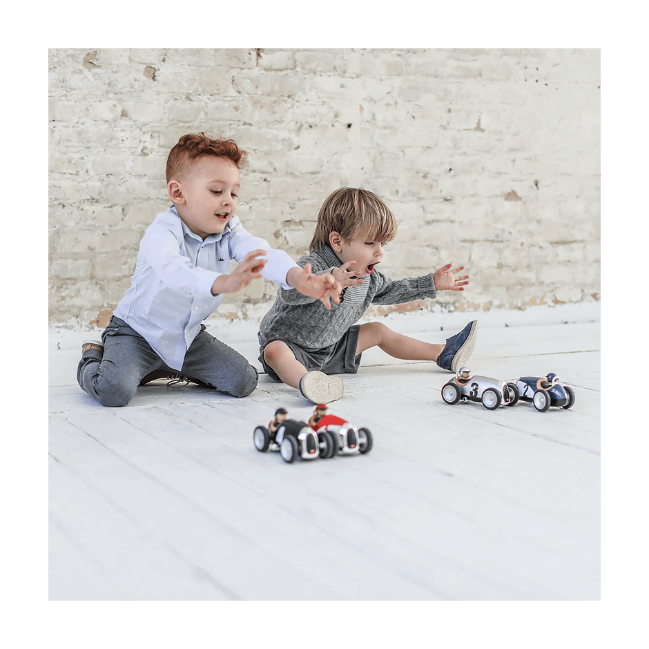 Un avant fuselé et des grandes roues comme les bolides anciens, pour des courses endiablées ! Parce que nous savons que les jeux d’enfants exposent nos autos aux carambolages, la Racing Car est fabriquée dans un plastique ABS très solide puis laquée et polie à la main. Elle peut ainsi résister aux conditions de pilotage les plus extrêmes ! Dans la tradition des automobiles de courses de renom, la Racing Car Rouge a été conçue en France par notre équipe de designers, fous du volant !