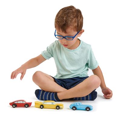 Tender Leaf Transport: VOITURES RÉTRO 11x14,5x4cm, set de 3 voitures de sport vintage, en bois, en boîte 18,5x4,1x18,1cm, 3+
